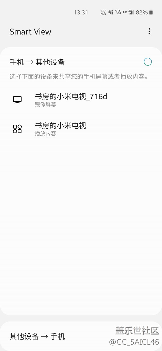 投屏必須在同一個網(wǎng)絡(luò)下,打開Smart View進行連接。電視打開投屏其它安卓手機投屏進行連接或者選擇筆記本進行連接。Smart View 還可以選擇手機寬高度。不過投屏后手機發(fā)熱,耗電快,不能玩手機。