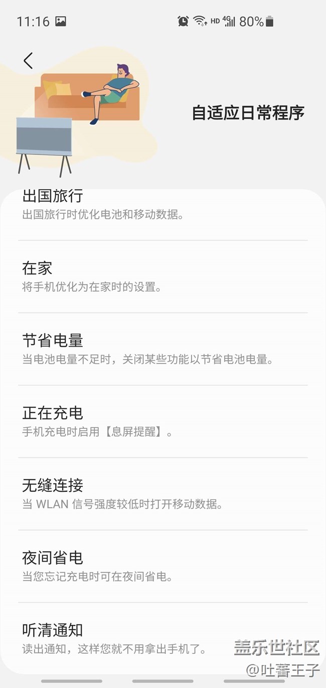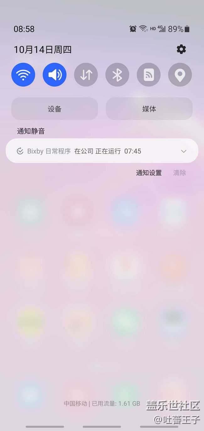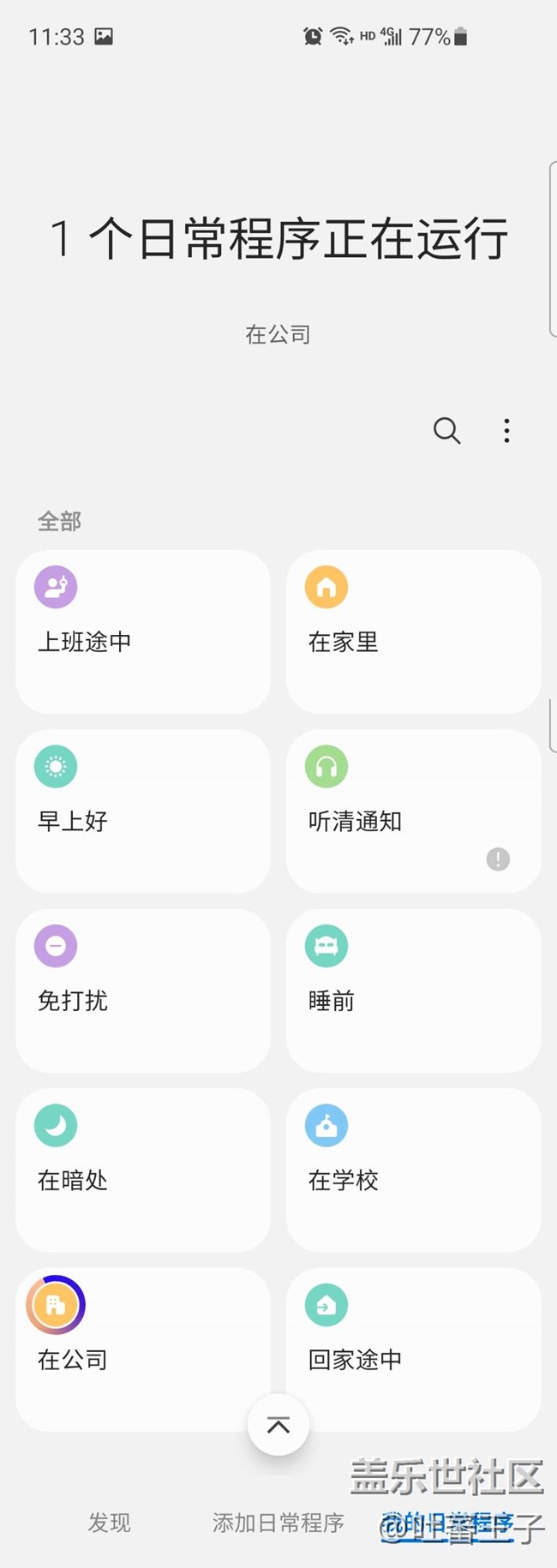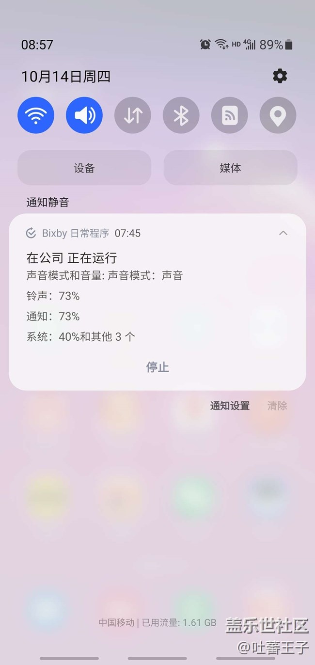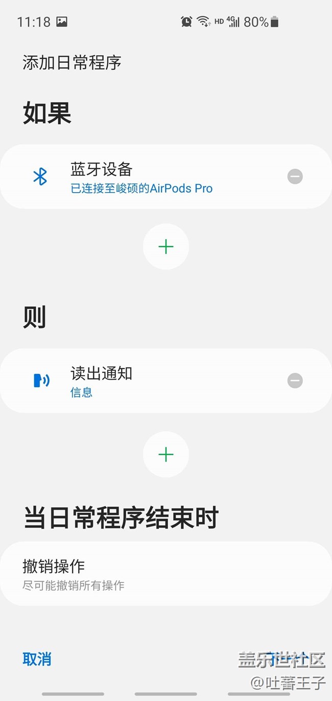 打開這個bixby日常程序后,在發(fā)現(xiàn)頁面可以看到三星預設的幾個自動化流程,比如在連接耳機的時候可以讀出特定應用的通知,這個就非常實用,不用看屏幕,尤其是在跑步或者上下班的路上,再也不用掏出手機看信息,從而重要信息不會錯過。