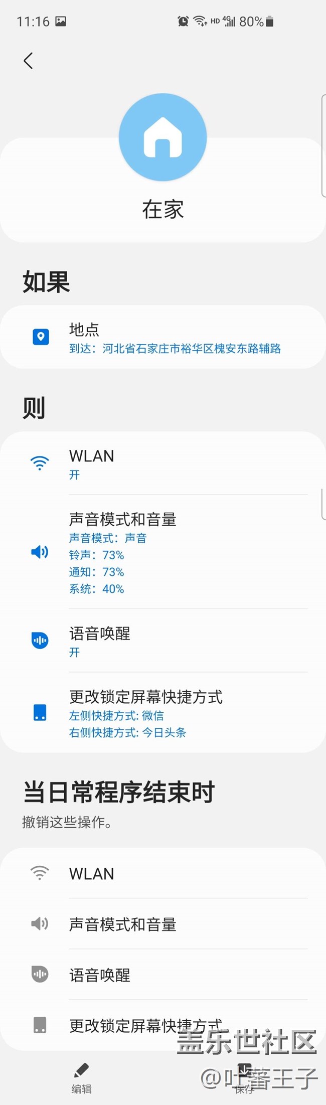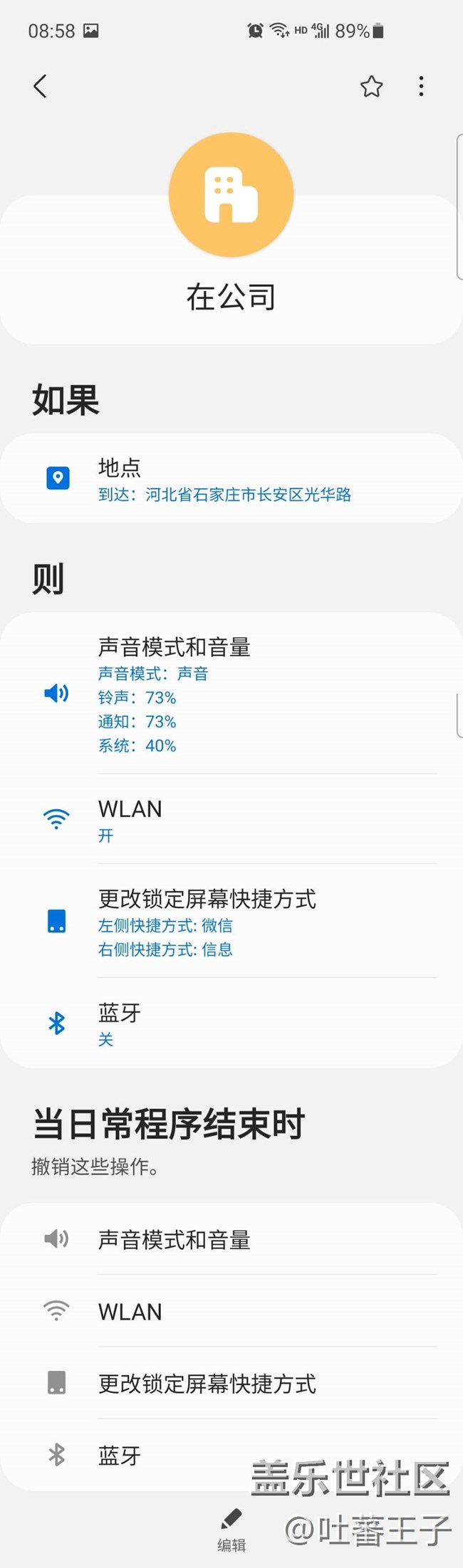 BIXBY日常程序創(chuàng)建邏輯非常簡單,命令就是簡單的語句:如果………則………..,其中可以觸發(fā)如果的條件包括手動啟動某程序、公司、在家、路上等不同情景,不同時間段等,“則”就是觸發(fā)不同的應用,從網(wǎng)絡、通知、鎖屏顯示、定位、電池、系統(tǒng)優(yōu)化、多媒體等。
