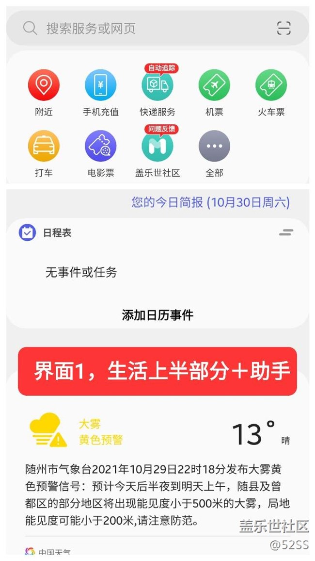 3.把生活界面的最上部分各種快捷選項(xiàng)和助手界面直接合并,這個(gè)界面是三星生活助手的真正精髓(正兒八經(jīng)的成為了三星生活助手界面)