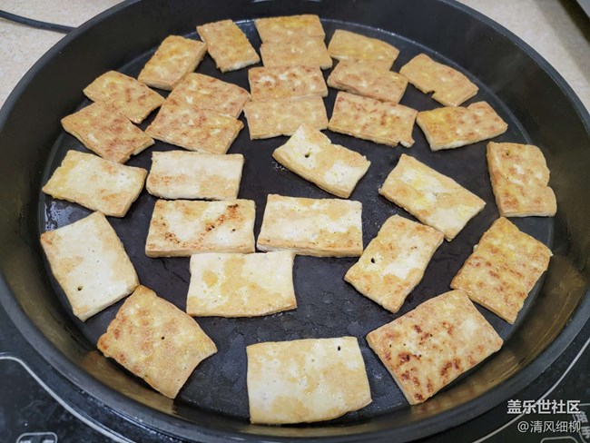 家里有電餅鐺的更方便,鍋底刷薄油,油溫升高放入豆腐塊,五六分鐘就可以煎好。