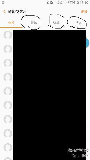 • 通知類短信里,分出了“賬單、訂單、快遞”的分類,不過這幾個(gè)分類里都是空的,不知道是不是新收到的短信才會(huì)分類,已有的沒分,如下圖: