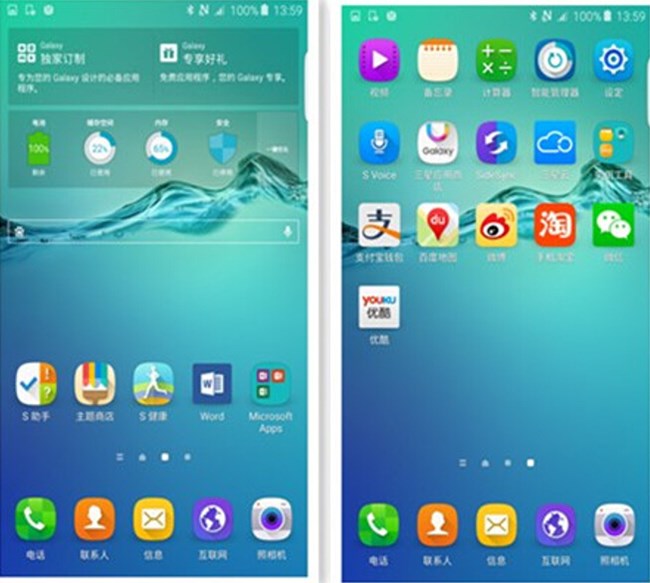 從以上截圖中大家可以看出,全新版本的TouchWiz終于取消了二級(jí)菜單。相信三星自己也意識(shí)到,在安卓系統(tǒng)APP越來(lái)越混亂的今天,仍然堅(jiān)守二級(jí)菜單設(shè)計(jì)對(duì)于操作便捷性全無(wú)好處。畢竟傳統(tǒng)二級(jí)菜單的優(yōu)勢(shì)在于桌面分類(lèi)管理,而這樣的功能完全可以通過(guò)“文件夾”這樣的小設(shè)定來(lái)解決。系統(tǒng)UI在“扁平”跟“擬物”之間取了一個(gè)折中,所有的系統(tǒng)原生圖標(biāo),包括文件夾圖標(biāo)都做了圓滑處理。從截圖上看不出折中圓滑處理的好處,但實(shí)際上把S6 edge+拿在手里來(lái)看的話,這種風(fēng)格的圖標(biāo)與雙曲面屏幕相得益彰,還是相當(dāng)好看的。不過(guò)三星在這方面做得還不夠徹底,相比一些國(guó)產(chǎn)品牌為保證畫(huà)風(fēng)一致而幾乎重繪市面所有APP圖標(biāo)所下的功夫,三星顯然還需要更接地氣一些。