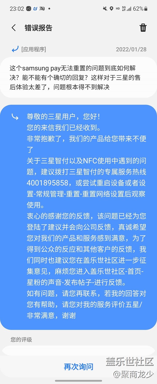 帖子標(biāo)題: 三星售后太差,samsung pay出現(xiàn)問題