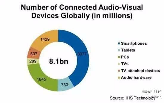 IHS表示,2015年年底全球已經(jīng)擁有超過81億臺聯(lián)網(wǎng)智能手機、平板、私人電腦、電視和電視附屬設備和音頻設備,平均全球每個家庭擁有四臺設備。按照目前的趨勢,Google Chromecast的發(fā)展前景無疑是巨大的。