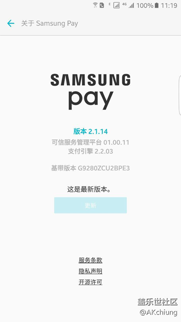 帖子標(biāo)題: 三星智付更新了2.1.14版本了