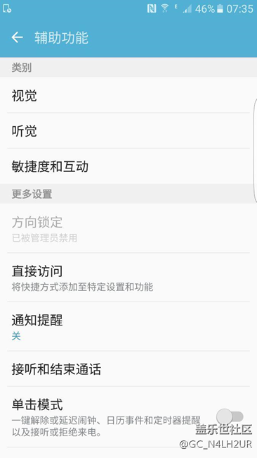我的s7edge 輔助功能里有個(gè)方向鎖定被管理員禁用,我也不知道怎么被禁用了呢?怎么恢復(fù)不被禁用???