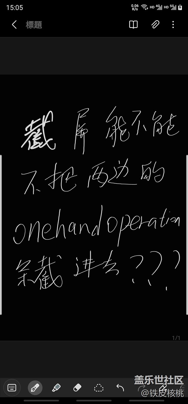 咱就是說,三星能不能在截屏的時(shí)候自動(dòng)忽略兩邊的onehand操作框?就是不給它設(shè)定為無(wú)色,為了方便看清楚操作框的范圍哈,很多時(shí)候是設(shè)置了顏色,就是截屏給它自動(dòng)屏蔽掉不帶入截圖中去,一個(gè)小建議,望采納,謝謝。