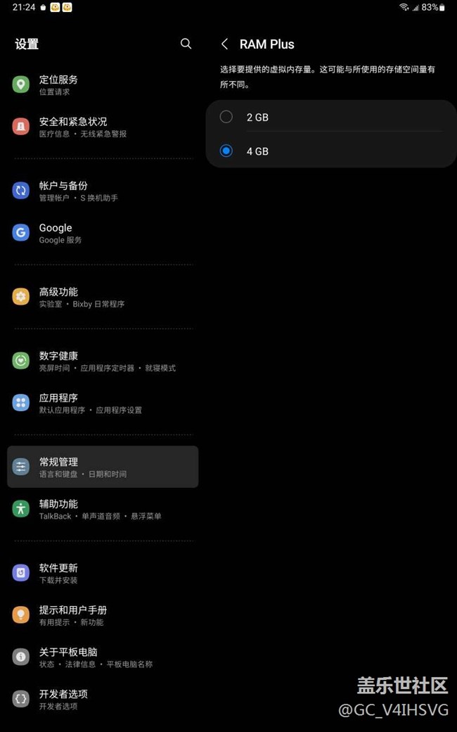 s7fe升級了oneui4.1 虛擬內(nèi)存為什么最多4g 圖片