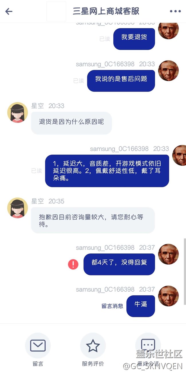 帖子標(biāo)題: 三星售后真的爛,4天了一句話沒有。