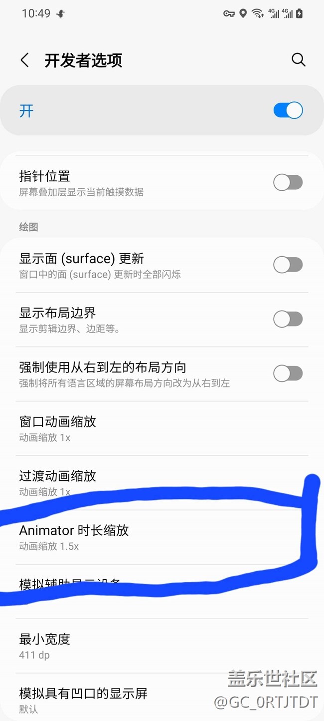 不知道工程師怎么想的,4.0的動畫就很好,非要改進入開發(fā)者模式,改成1.5就行了