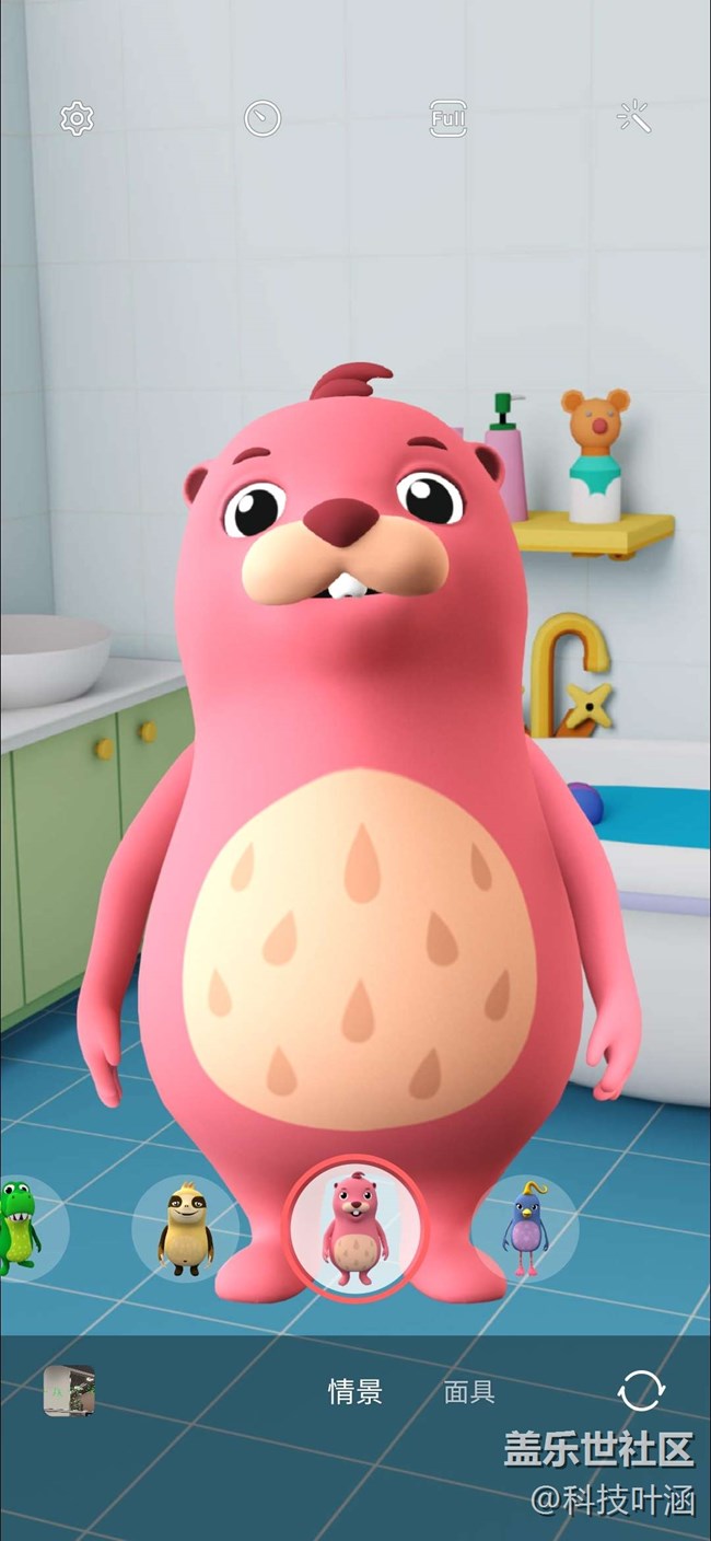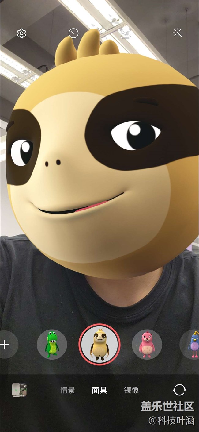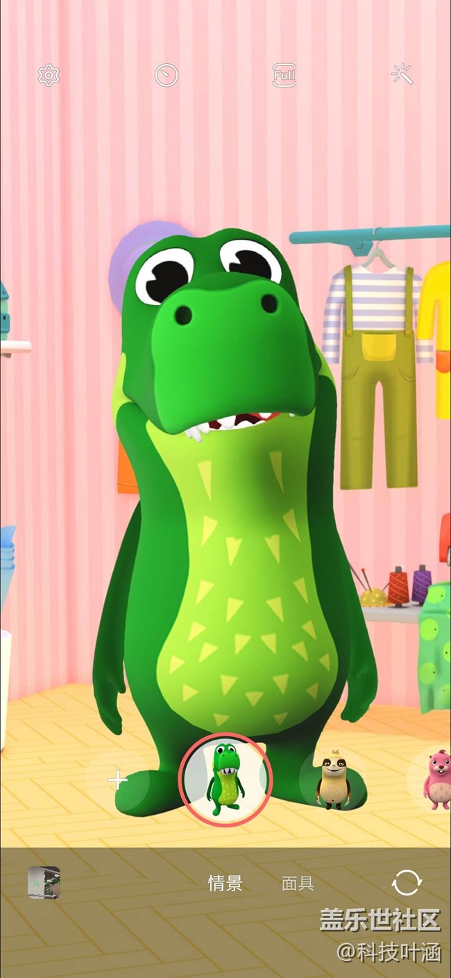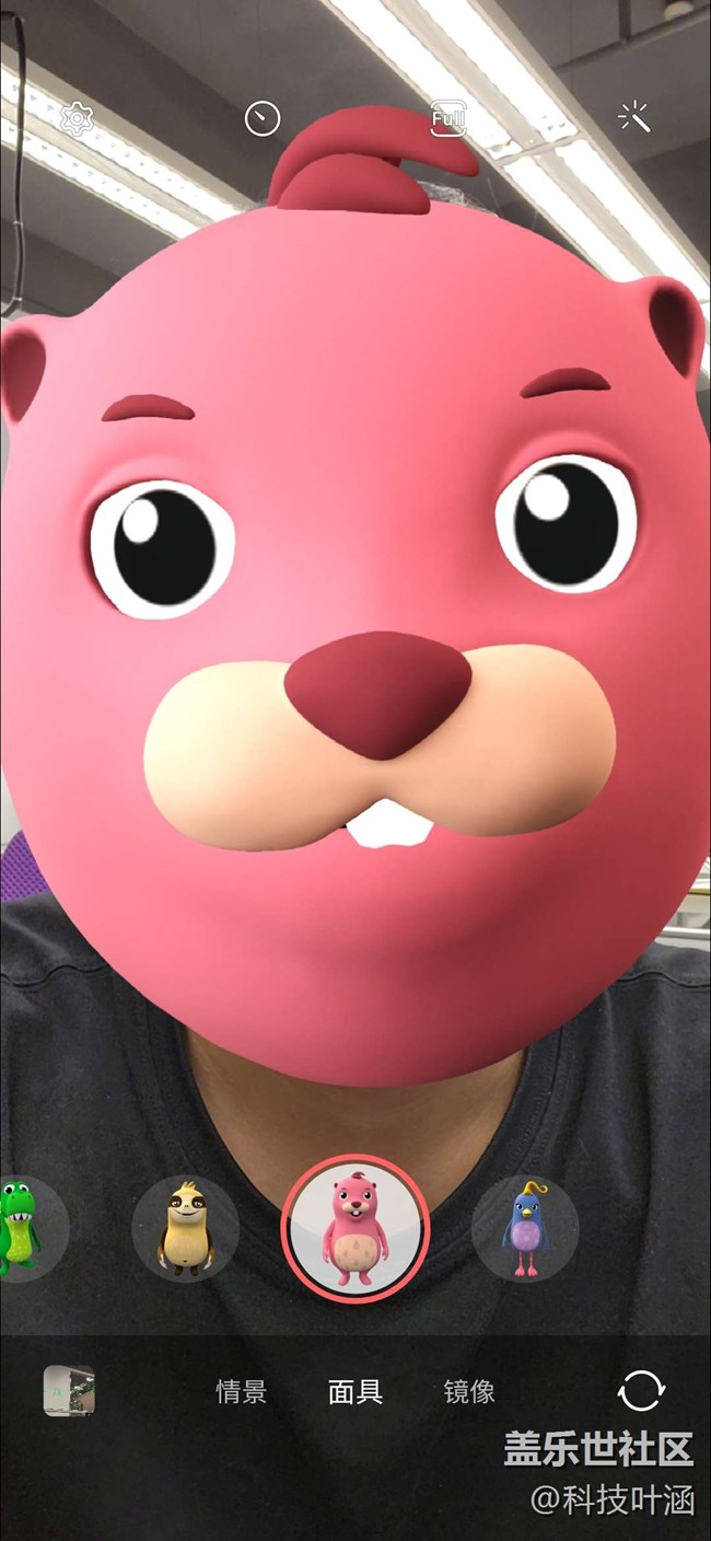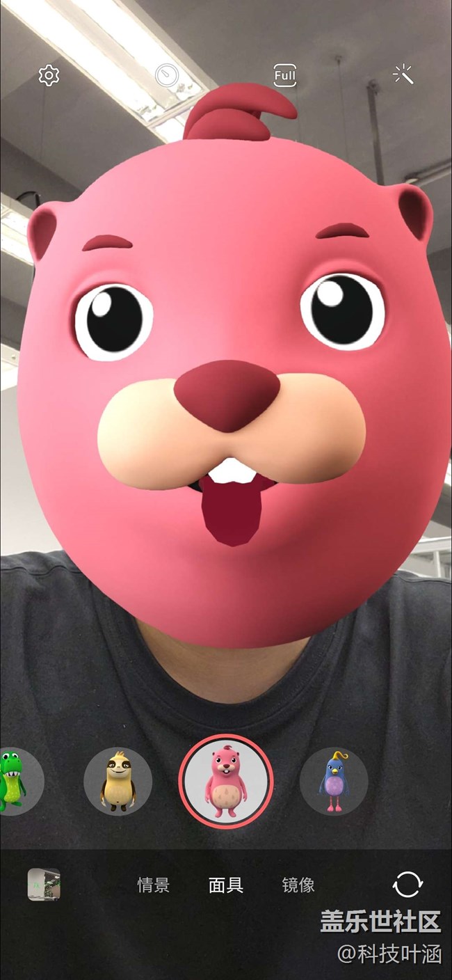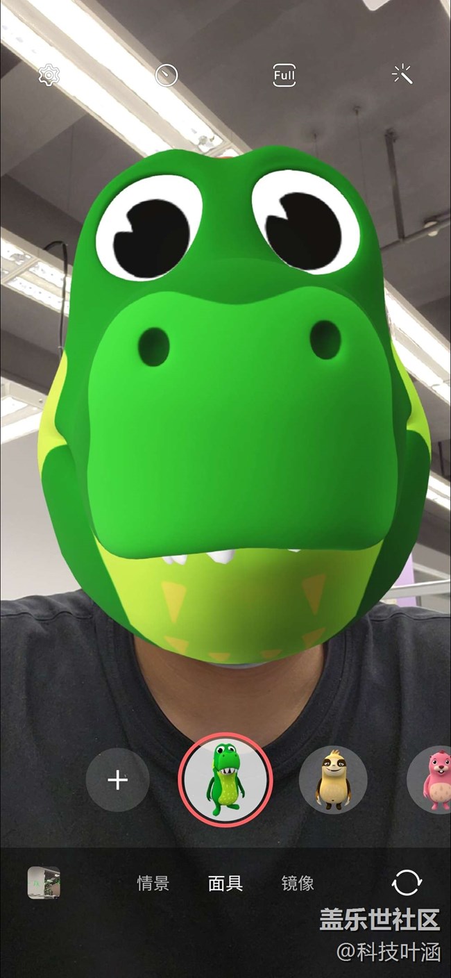 進入相機-更多-AR區(qū),您會發(fā)現(xiàn)超多超好玩的功能,動態(tài)萌拍工作室、動態(tài)萌拍相機、動態(tài)萌拍貼紙和AR涂鴉、裝飾圖片,以動態(tài)萌拍相機為例,各種面具可供任意選取,小恐龍、土撥鼠等哈哈,更為重要的是識別速度超快哦,您怎么動它就跟著怎么動,還有各種小表情哦比如張嘴、吐舌頭等,哈哈,超好玩,大家可以去試試哦!