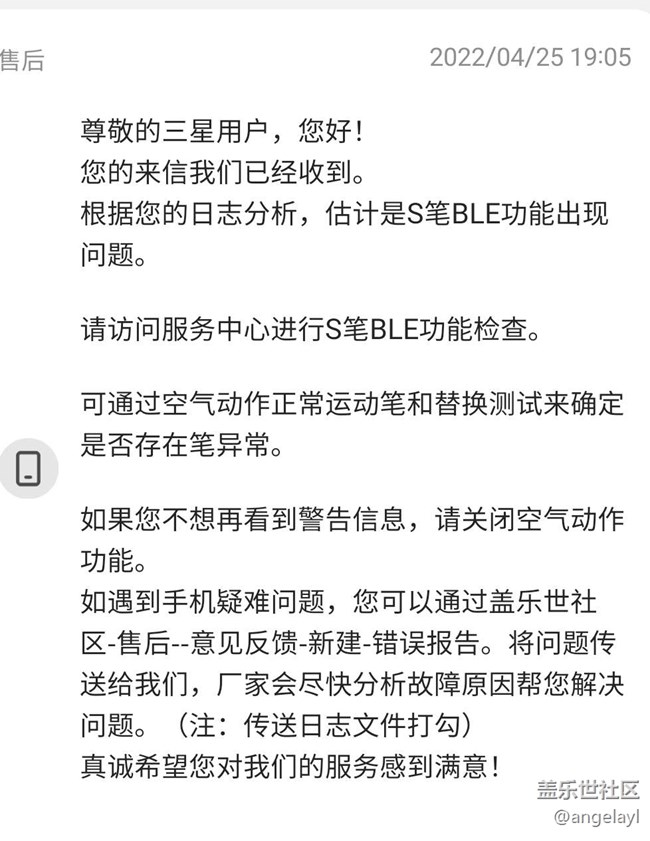 收到售后的回復(fù),說是筆的BLE功能有問題 圖片