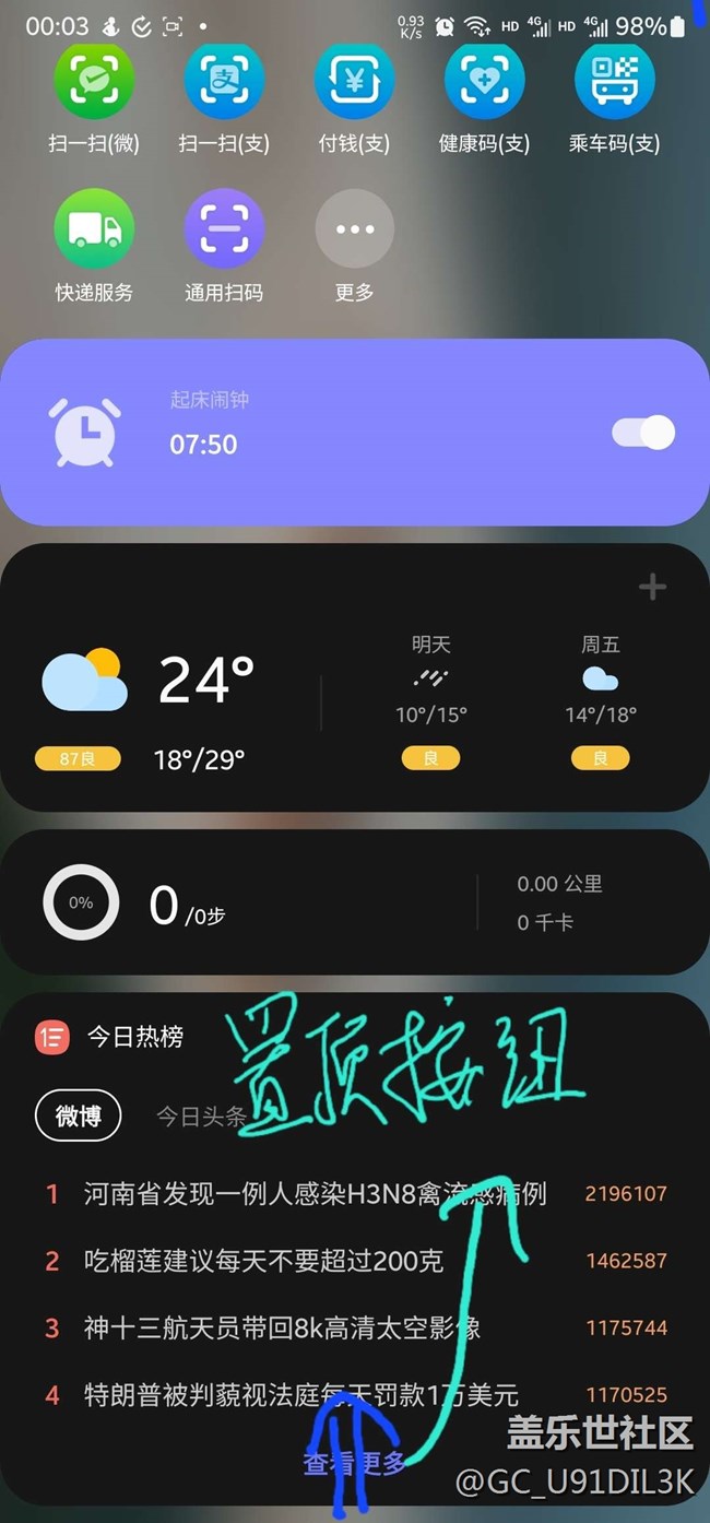 負(fù)一屏【今日熱榜總】下的【置頂按鈕】與“顯示更多”重疊 圖片