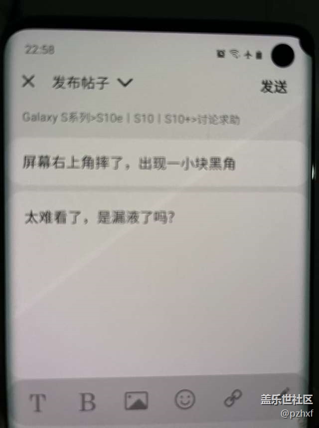 屏幕右上角摔了,角變黑了 圖片