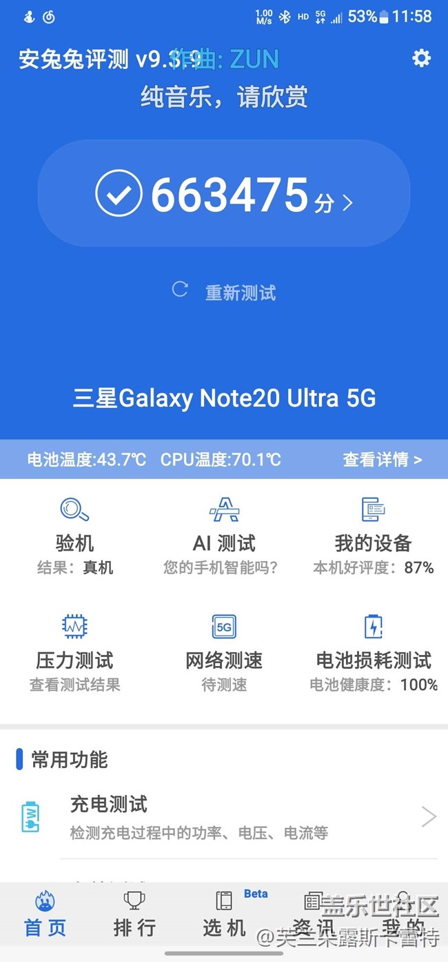 在深圳,現(xiàn)在30度,在室內(nèi)(一樓沒WIFI)用5G數(shù)據(jù)在b站看番,屏幕亮度拉滿了(看的fgo系列,很多夜晚打斗場景)電池43.7度,CPU直接飆70.1度了。10-12點:看番1個小時多一點。平時也是感覺比其他手機燙一點,不知道是不是散熱堆得少,不過屏幕質(zhì)量很好。