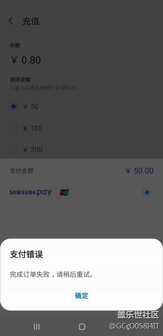 三星pay充值不了公交卡,升級(jí)完了也沒用,有一樣的嗎 圖片