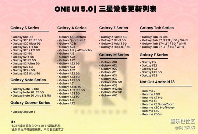 安卓13及OneUi5.0更新名單 圖片