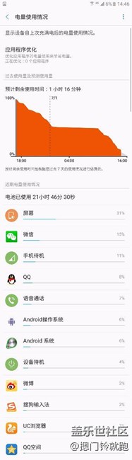 6.關(guān)于耗電:整體還行吧,再上一組耗電圖和亮屏?xí)r間,其實(shí)說(shuō)看續(xù)航就看亮屏并不太準(zhǔn)確。樓主玩著低功耗游戲?qū)嶒?yàn)過(guò),一直玩著,五個(gè)半鐘還剩45%的電。這么算下來(lái)亮屏九個(gè)鐘不是問(wèn)題。然而日常不經(jīng)意間中度使用,電話微博微信論壇新聞?shì)喎?,除了玩大游戲,手機(jī)用上20個(gè)鐘,這時(shí)候有可能亮屏?xí)r間才三四個(gè)鐘。一天下來(lái)也該回家充個(gè)電了吧。非得說(shuō)什么出身在外的,就省著花,帶個(gè)充電器,充電寶,不必糾結(jié)。note5的續(xù)航一直還算很誠(chéng)意了,個(gè)人使用下來(lái)的體驗(yàn),比什么評(píng)測(cè)都好。