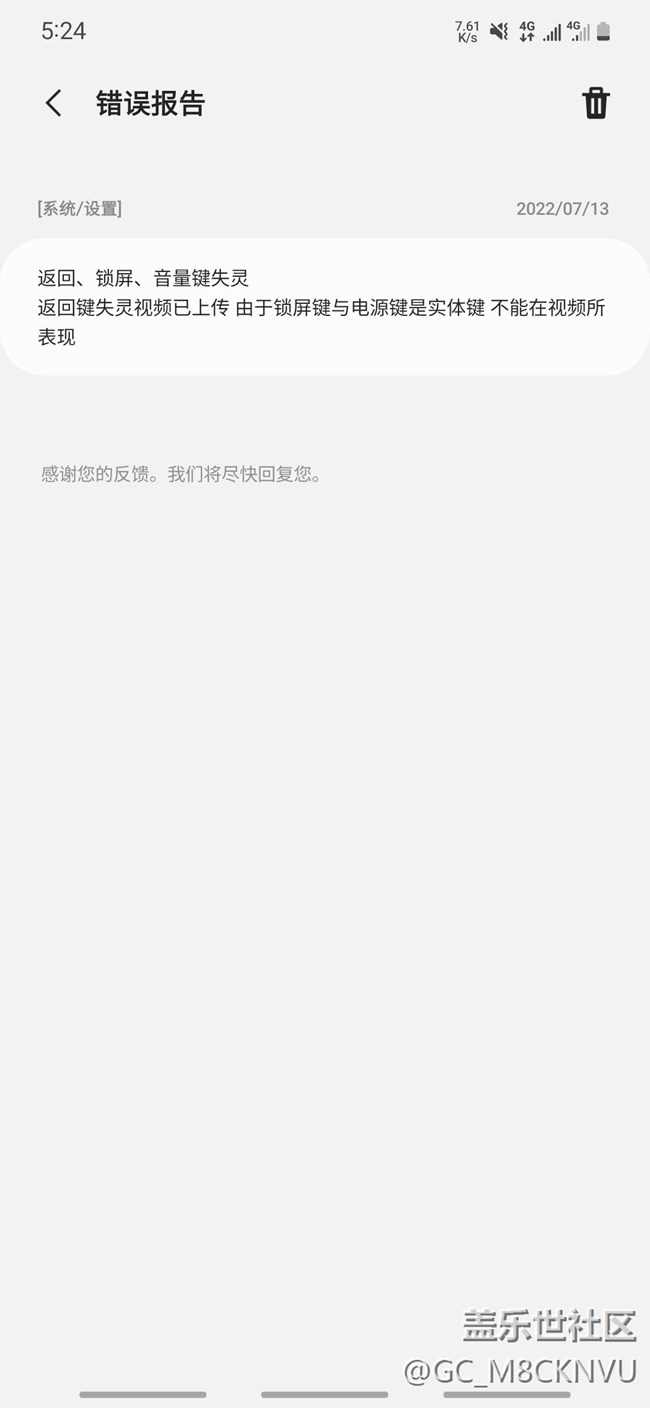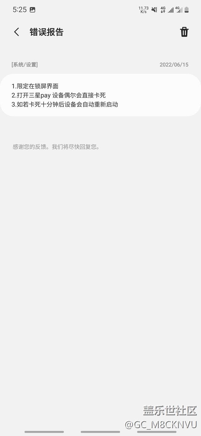 在上月中旬時 我的手機(三星s22)在幾天內陸續(xù)發(fā)生了不下三次卡死導致重啟的嚴重bug 我懷著無比復雜的心情上傳了錯誤報告