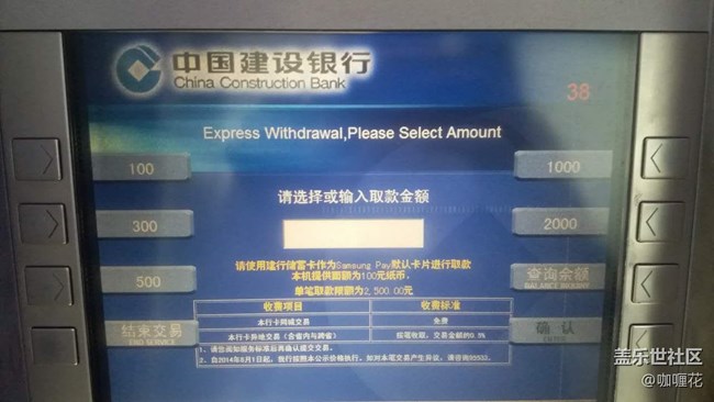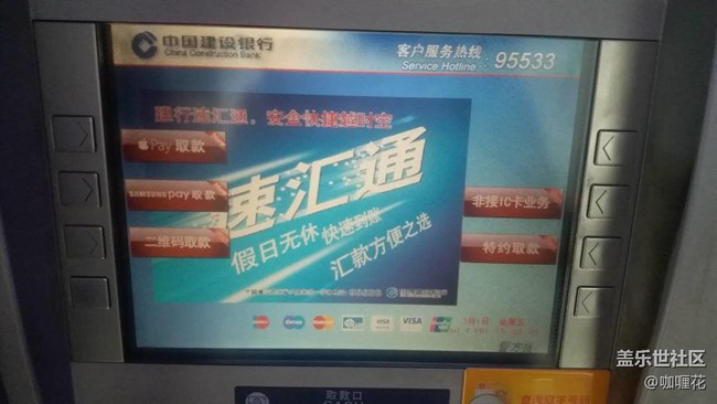 Samsung Pay已經(jīng)退出3個(gè)多月了,因?yàn)榫邆銶ST功能,所以基本上刷卡機(jī)都能拿下,但是總是會(huì)遇到有些場(chǎng)所不提供刷卡,這時(shí)候身上的現(xiàn)金又不夠用,不過有了Samsung Pay取款不用卡也不是難題了。已知Samsung Pay取款改造完成的銀行有建行和招行,我這里建行網(wǎng)點(diǎn)很多,我就開通了建行借記卡,進(jìn)門后選擇Samsung Pay取款