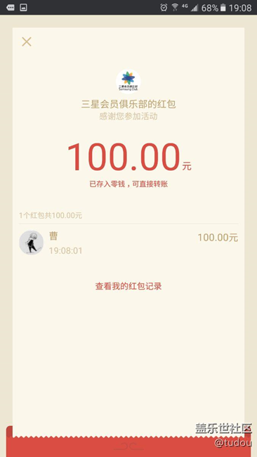 100元紅包收到了 圖片