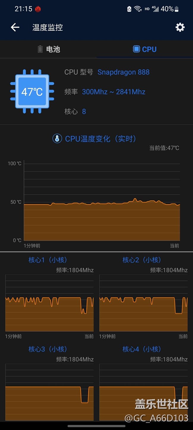 另一部驍龍765處理器的才39度,這個888真是太熱了