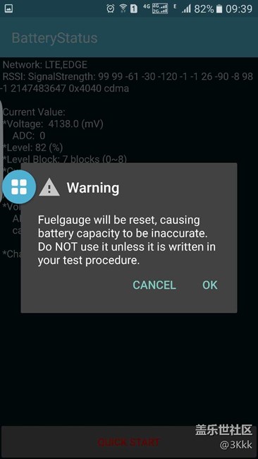 之前在社區(qū)器里面看到,有人分享了電池校正的方法,通過“*#0228”的方式,于是就準(zhǔn)備嘗試,輸入*#0228#,進(jìn)入了二級(jí)工程模式界面,一點(diǎn)按鈕,彈出一個(gè)警告,大致意思就是讓我們不要使用,這個(gè)功能其實(shí)是給工程師在開發(fā)板機(jī)器上使用的,非我們已經(jīng)正式發(fā)布的的手機(jī),仔細(xì)一想也對(duì),如果這個(gè)功能這么好,那為什么三星不把這個(gè)功能開放給用戶呢?這樣用戶電池使用效果好了,對(duì)產(chǎn)品滿意度也就更高了,何樂而不為呢?于是我果斷放棄了這種方式,萬一使我電池更糟糕那就因小失大了,可是心里面還是不甘心啊,于是上網(wǎng)查了一下關(guān)于這種方式校正電池,有的人說,效果好,有的人說電池反而被搞壞了,于是就更不敢嘗試了,之后我又給三星售后維修的工程師電話質(zhì)詢了一下,這種方式,得到的結(jié)果就是,說了一大堆,反正就是不建議我使用這種方式。