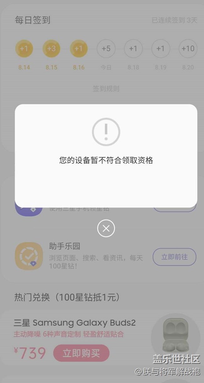 每天星鉆領(lǐng)的好好的,今天的其它星鉆都領(lǐng)了,就剩這一個(gè),告訴我不符合資格。請(qǐng)問(wèn)是什么情況?我的手機(jī)是S21U。