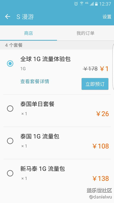 連忙更新,打開(kāi)s漫游,我擦,這價(jià)格,哪個(gè)土豪玩的起?1g一百多?瘋了吧。泰國(guó)happy卡,7天無(wú)限流量加話費(fèi),才299株,折合人民幣四十幾塊,淘寶上二三十塊有交易,避免廣告淘寶我就不上圖了。真的是瘋了才用s漫游。