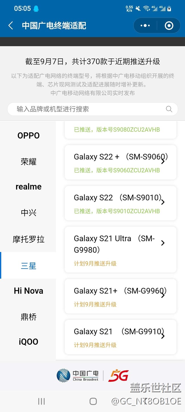廣電5g支持即將到來!s22都吃上了! 圖片