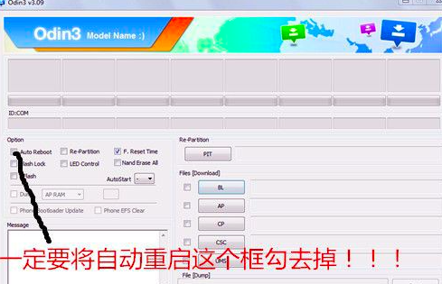 *這里友情提示大家:在用Odin刷REC的時候,一定一定要把自動重啟這個選項去掉,使用手動重啟?。。∵@一步很關鍵,大家切記!