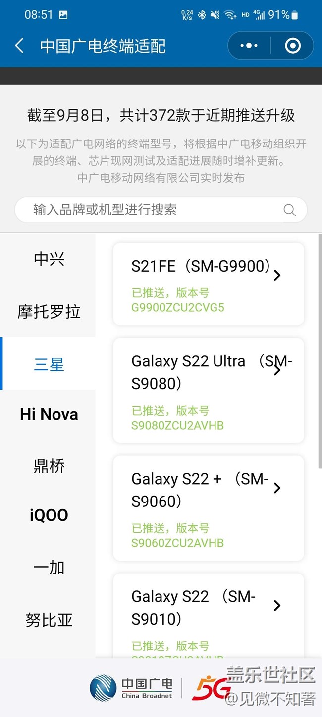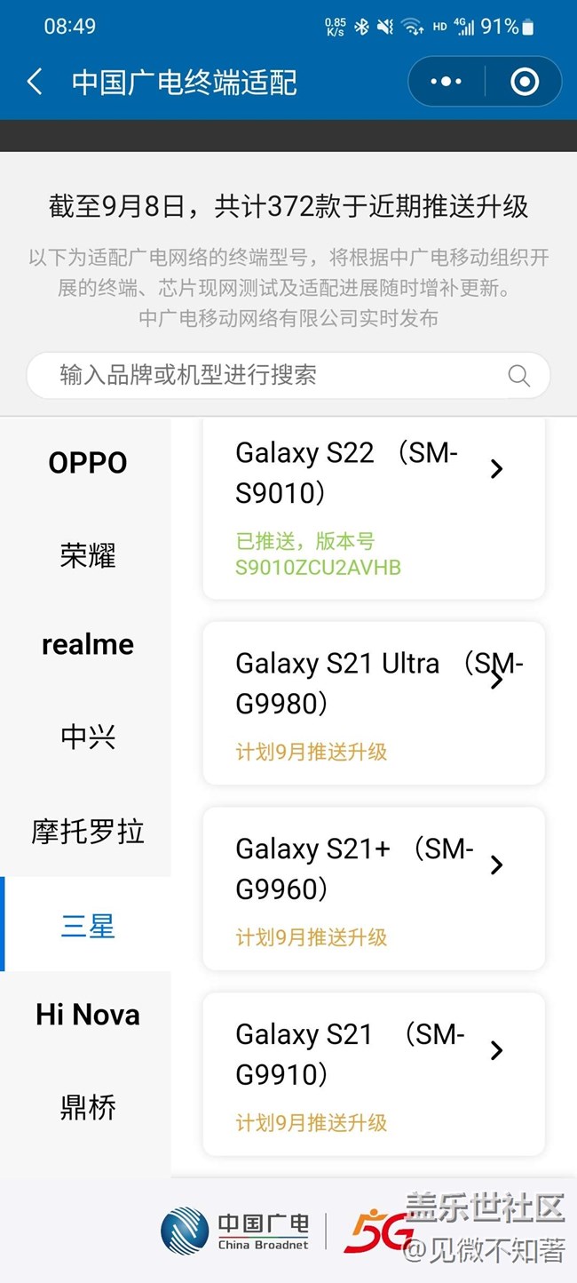 普通同慶,眾多三星s21-22機(jī)型更新廣電! 圖片