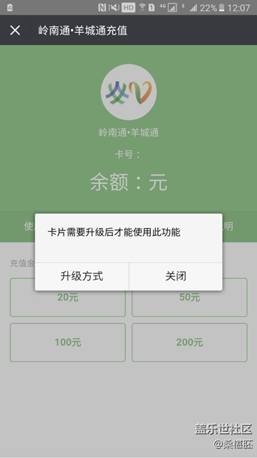 3.如圖,還沒(méi)有去相應(yīng)服務(wù)點(diǎn)升級(jí)嶺南通充值方式的話,還是要先去那邊升級(jí)了才能在手機(jī)充值,就這個(gè)有點(diǎn)麻煩和不人性化。。。
