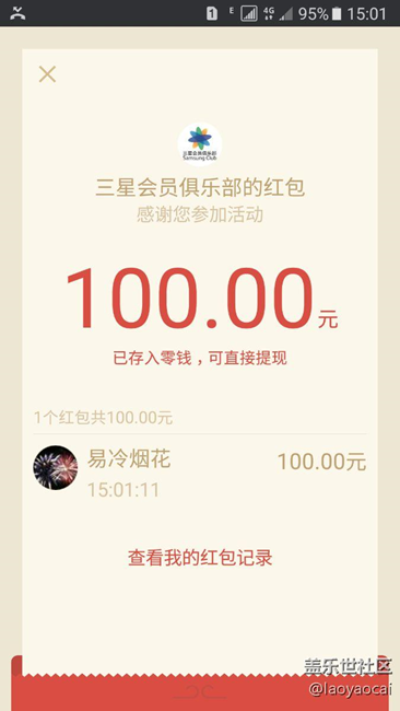今天終于收到了三星的紅包