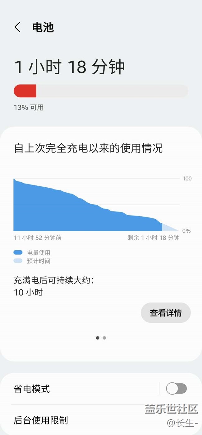 新?lián)Q的電池,從早上7點(diǎn)到晚上6點(diǎn)半,沒有充電,還有13%的電量,感覺還可以,開的2k加60hz,