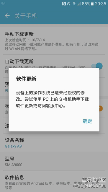 帖子名稱: 三星a9出現(xiàn)系統(tǒng)通知手機被root