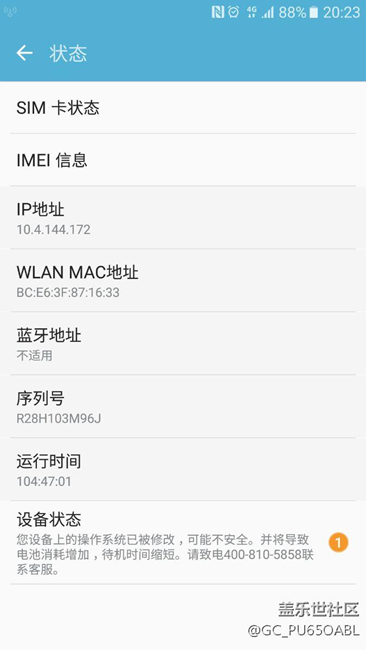 今天早上上班,由于工作環(huán)境不讓帶手機,一直在更衣柜里放,下班后打開手機收到系統(tǒng)通知,你的手機操作系統(tǒng)已被修改,已經(jīng)root,這是什么情況求解,覺得不應(yīng)該啊, my Knox   Samsung pay軟件都正常運行,是不是官方系統(tǒng)檢測錯誤,我根本沒root過。