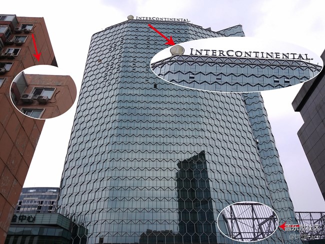 首先第一張圖,不用在乎美不美什么的,這張照片主要帶你看細(xì)節(jié),看到上圖三個(gè)圈圈中的東西了么?是所拍照片的局部特寫,對焦點(diǎn)是在對面的這座大樓,但是周圍的細(xì)節(jié)呈現(xiàn)是不是也十分出色呢?