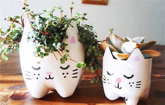 平時喜歡有創(chuàng)意的東西,喜歡自己搞點小制作,這些都是用洗衣液瓶,一把美工刀和一把電烙鐵制作而成的,刀修型,烙鐵燙圓洞,控制好烙鐵的溫度,可一次成型,花草可栽發(fā)財樹,幸福樹,袖珍椰樹等耐陰類好養(yǎng)花草。太漂亮了,簡直變廢為寶??!
