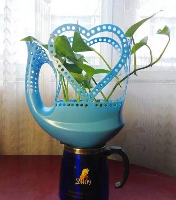 都說高手在民間,一點也沒錯,下面這個還可以養(yǎng)金魚,你只需要在花盆的下半部分最高點鉆幾個小孔即可,給魚提供氧氣即可以