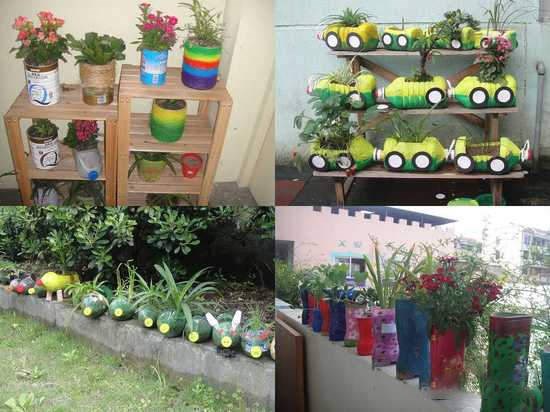 再來教大家?guī)渍校儚U為寶!!!以后吃完的油壺和可樂瓶,都可以制作成漂亮的花盤和花瓶哦。