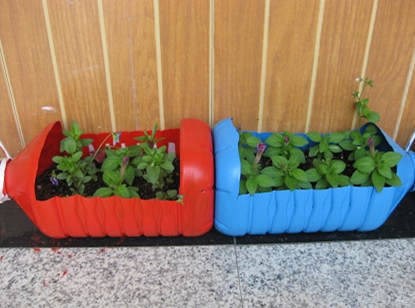 再來個用完的廢棄油壺,直接DIY,養(yǎng)花種菜隨你便