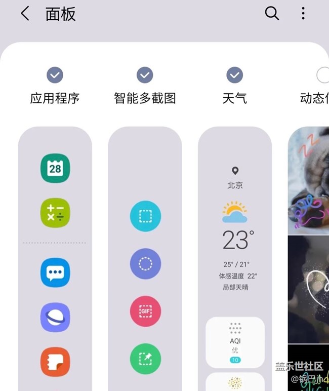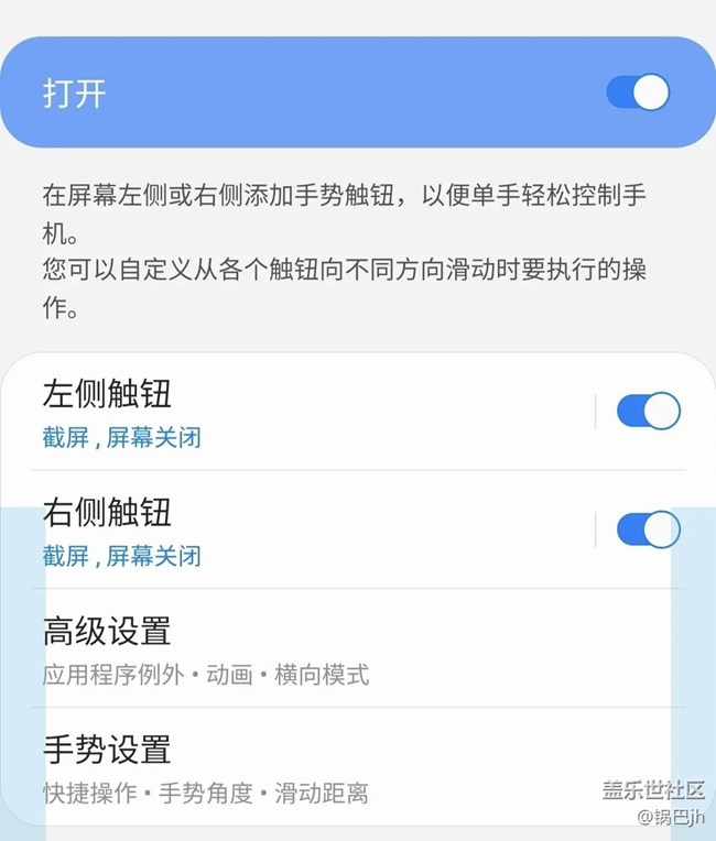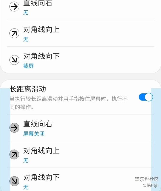 3??高級:應(yīng)用商店下載Good Lock,找到One Hand Operation +功能,設(shè)置左右屏手勢功能。里面可以添加的快捷手勢很多,我擔(dān)心誤觸(主要是記不住??),只設(shè)置了向斜下滑截圖,直線長按鎖屏這兩個(gè)功能。個(gè)人覺得很實(shí)用,一個(gè)小滑動就能快速截圖。。