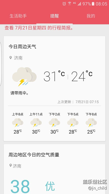 如圖所示。不知道怎么出來(lái)的。每天早晨提醒,很方便。我兩臺(tái)7e,只有一臺(tái)提醒。不知道怎么設(shè)置。