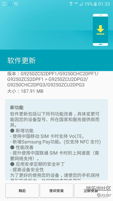 今天凌晨檢查更新,187mb更新包,成功更新sp和volte。