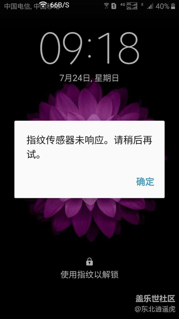 指紋解鎖屏幕一直正常今天確彈出提示求解?