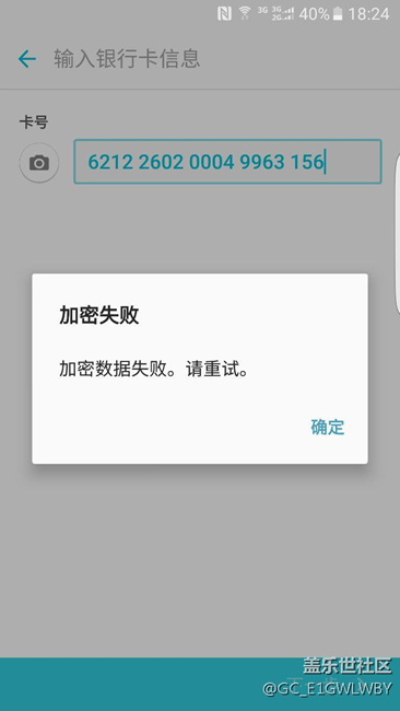 綁定銀行卡顯示加密數(shù)據(jù)失敗 問什么我的是三星S6小曲面型號是 G9250