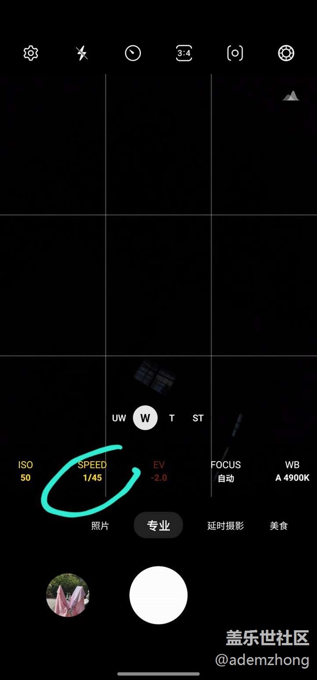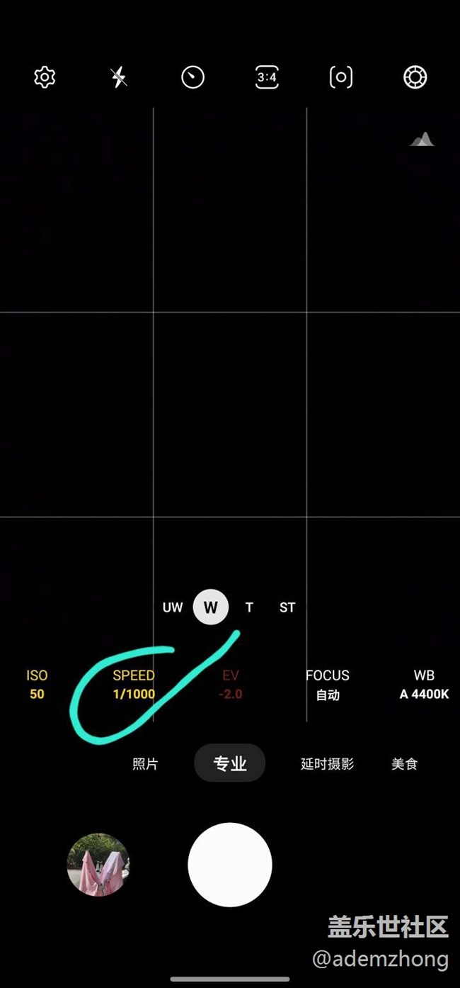 所以只需要手動(dòng)設(shè)置足夠的曝光時(shí)長(zhǎng)即可,進(jìn)入手機(jī)的專業(yè)模式即可