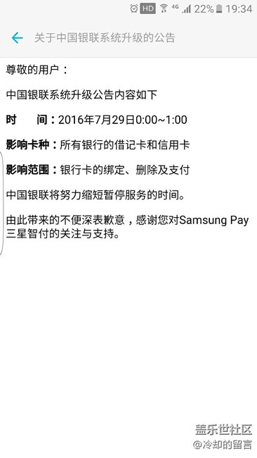 三星智付7.29無法添加和支付問題應(yīng)該是如下問題,望各位周知 圖片